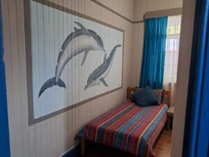 Sea Lions Backpackers Lodge has the easygoing charm of a coastal home where everyone instantly feels at ease. The house is filled with character: wooden floors that have heard plenty of stories, bright pops of colour, and a mix of rustic furniture that makes the whole place unique and welcoming. Guests relax on the wide front veranda, share meals and laughter in the communal kitchen, and gather in the cosy lounge after a day of diving. The outdoor braai area and upper deck look straight toward the ocean, making it the perfect spot for sunset chats, stargazing or swapping dive tales. It’s friendly, unpretentious and full of personality, creating the kind of atmosphere where strangers quickly become friends.